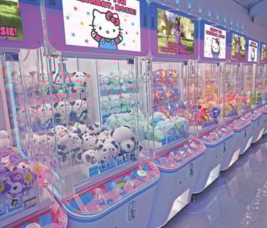 We can upload any photos, videos and/or text to our 22 Video screens on our claw machines.